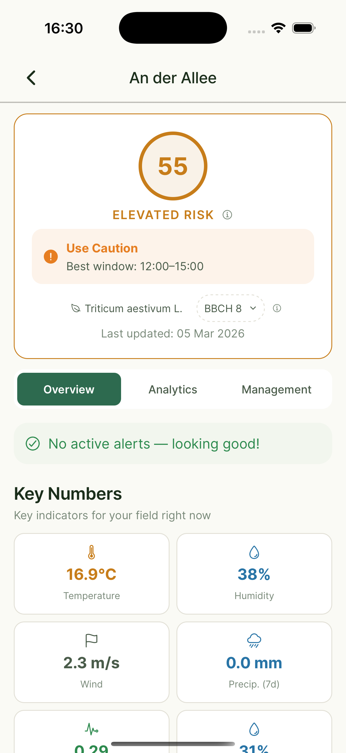 Dzienny indeks ryzyka na pole, alerty strefowe, optymalne okna oprysku