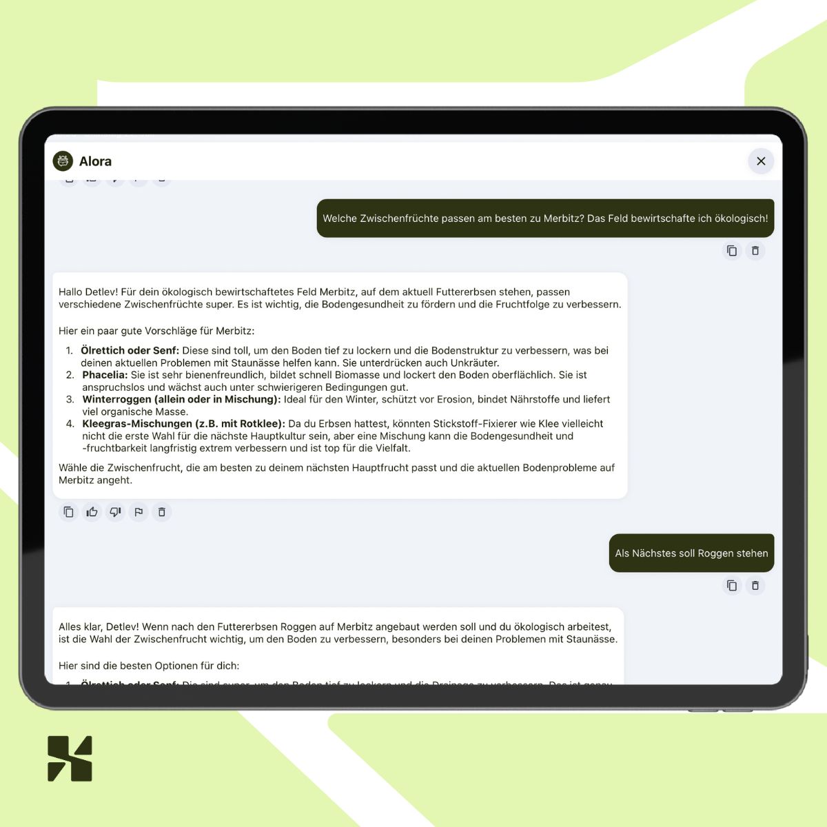 The special part: Alora doesn’t just look at averages, but considers field-specific data – from soil type to the planned follow-up crop.
