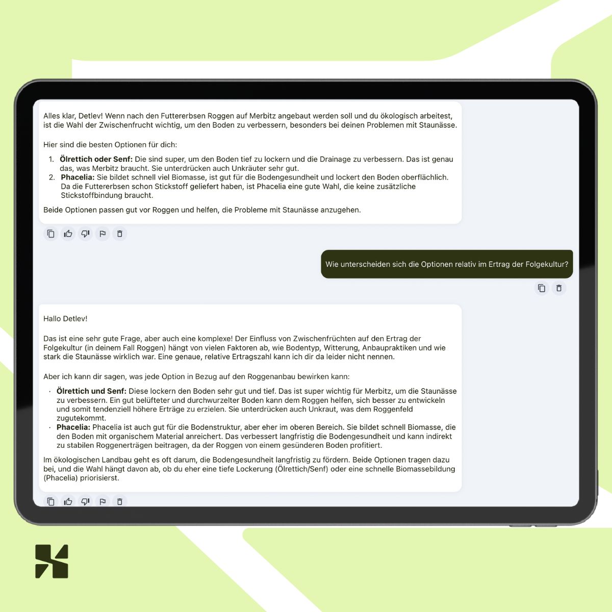 The question came right after harvest: Which cover crop fits my field in Merbitz? Instead of spending hours searching through articles, trials, and tables, we simply asked Alora.
